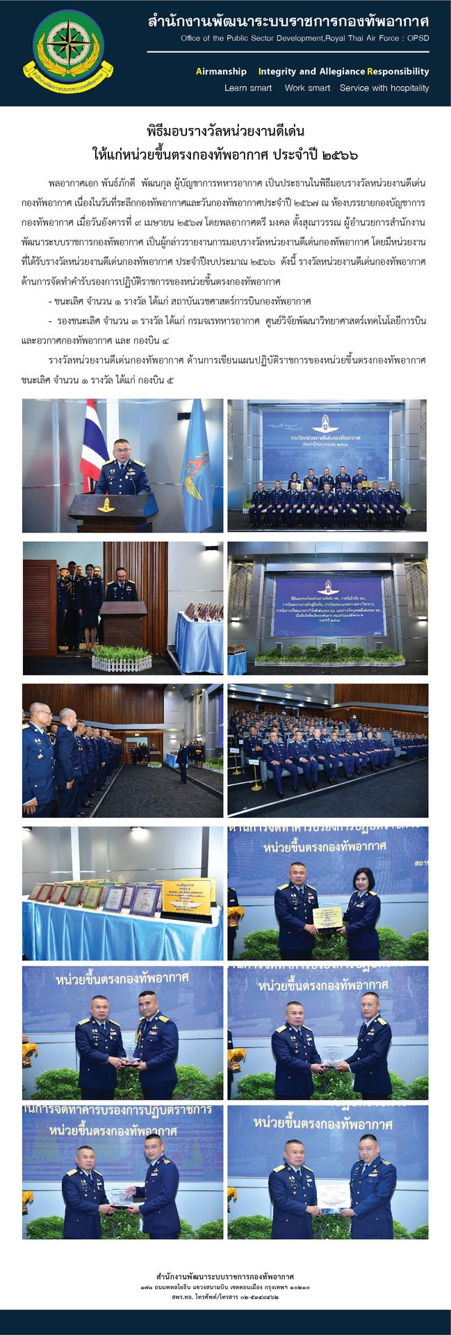 พิธีมอบรางวัลหน่วยงานดีเด่นให้แก่หน่วยขึ้นตรงกองทัพอากาศ ประจำปี ๒๕๖๖