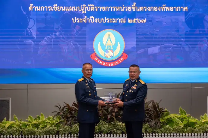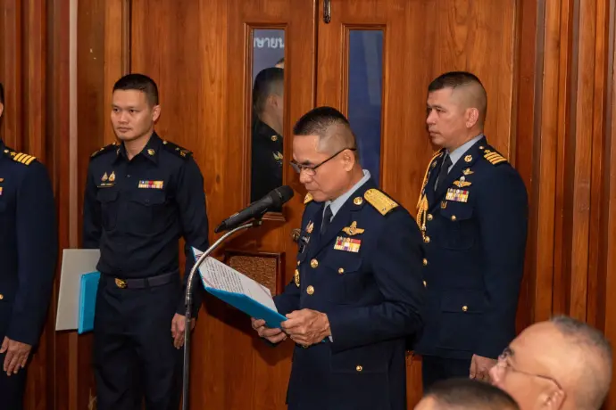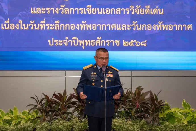 ห้องบรรยายกองบัญชาการกองทัพอากาศ เมื่อวันพุธที่ ๙ เมษายน ๒๕๖๘ โดยพลอากาศตรี