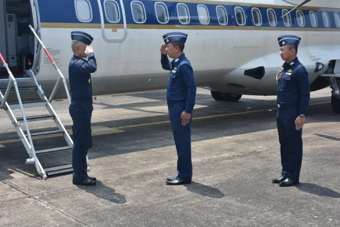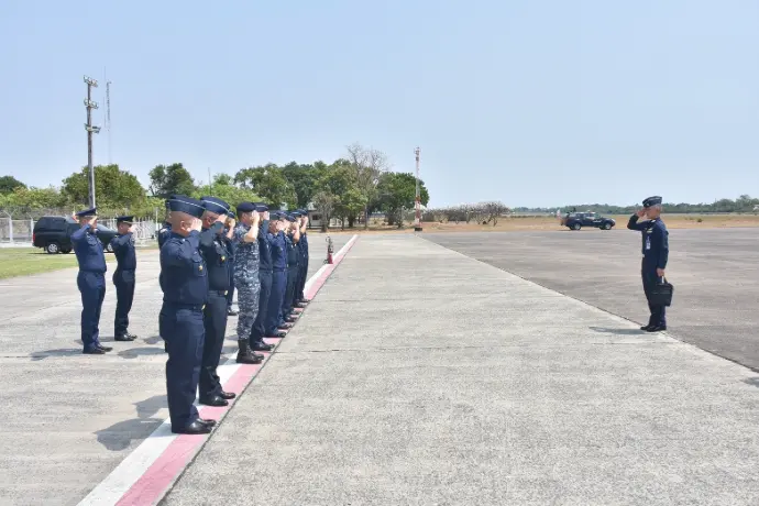 ๒๑ พร้อมด้วยหัวหน้าหน่วยขึ้นตรงกองบิน ๒๑ ให้การต้อนรับ