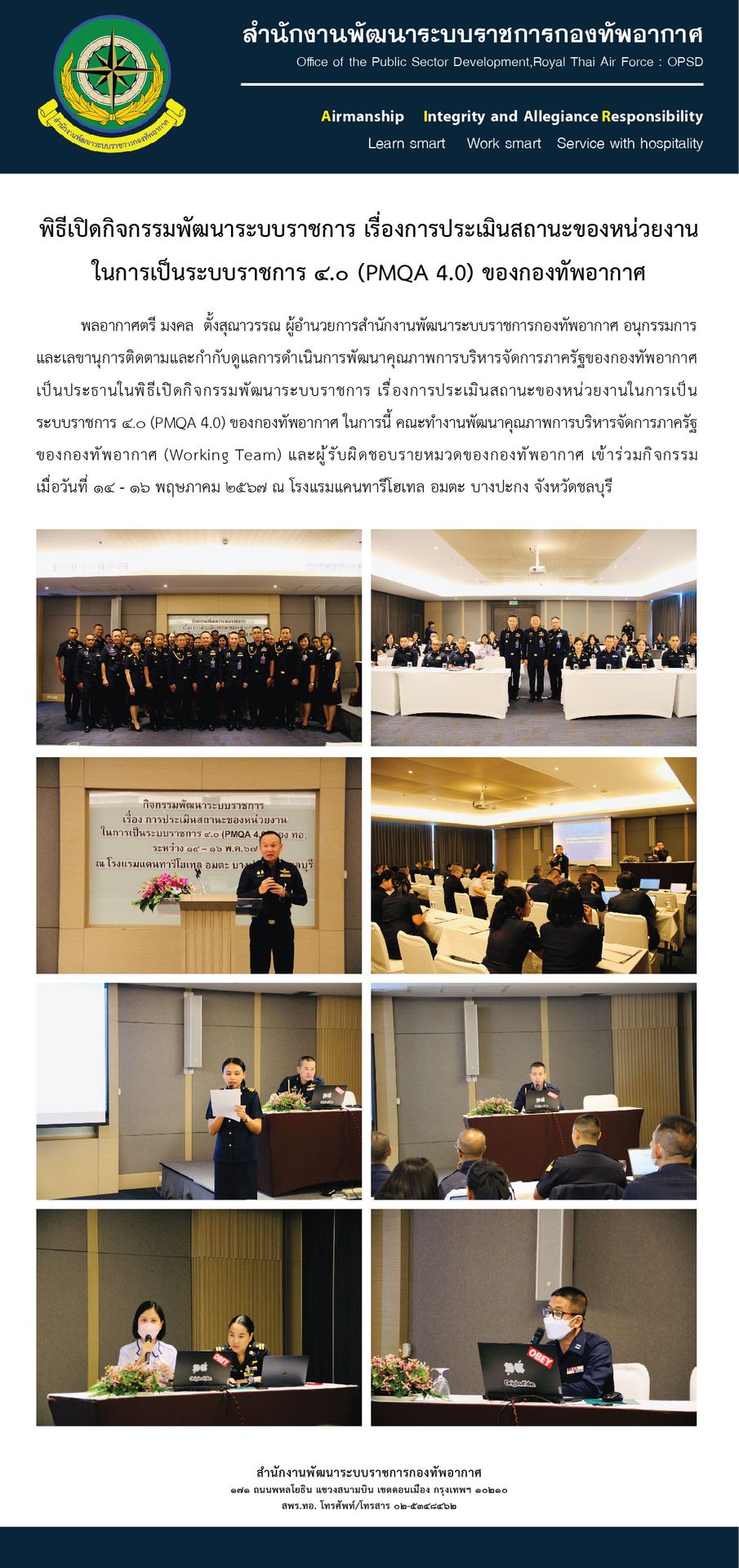 พิธีเปิดกิจกรรมพัฒนาระบบราชการ เรื่องการประเมินสถานะของหน่วยงานในการเป็นระบบราชการ ๔.๐ (PMQA 4.0) ของกองทัพอากาศ