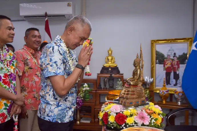 พลอากาศตรี กฤษณ์ เกตุรักษ์ ผู้อำนวยการสำนักงานพัฒนาระบบราชการกองทัพอากาศ เป็นประธานในพิธีสรงน้ำพระ และรดน้ำขอพรผู้บังคับบัญชา เนื่องในประเพณีสงกรานต์ ประจำปี 2569