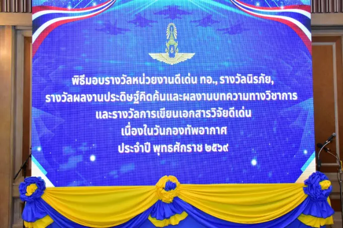 พลอากาศเอก เสกสรร คันธา ผู้บัญชาการทหารอากาศ เป็นประธานในพิธีมอบรางวัลหน่วยงานดีเด่นกองทัพอากาศ เนื่องในวันที่ระลึกกองทัพอากาศ และวันกองทัพอากาศ ประจำปี 2569 ณ ห้องรับรองจักรพงษ์ เมื่อวันพฤหัสบดีที่ 9 เมษายน 2569 โดยพลอากาศตรี กฤษณ์ เกตุรักษ์ ผู้อำนวยการสำนักงานพัฒนาระบบราชการกองทัพอากาศ เป็นผู้กล่าวรายงาน